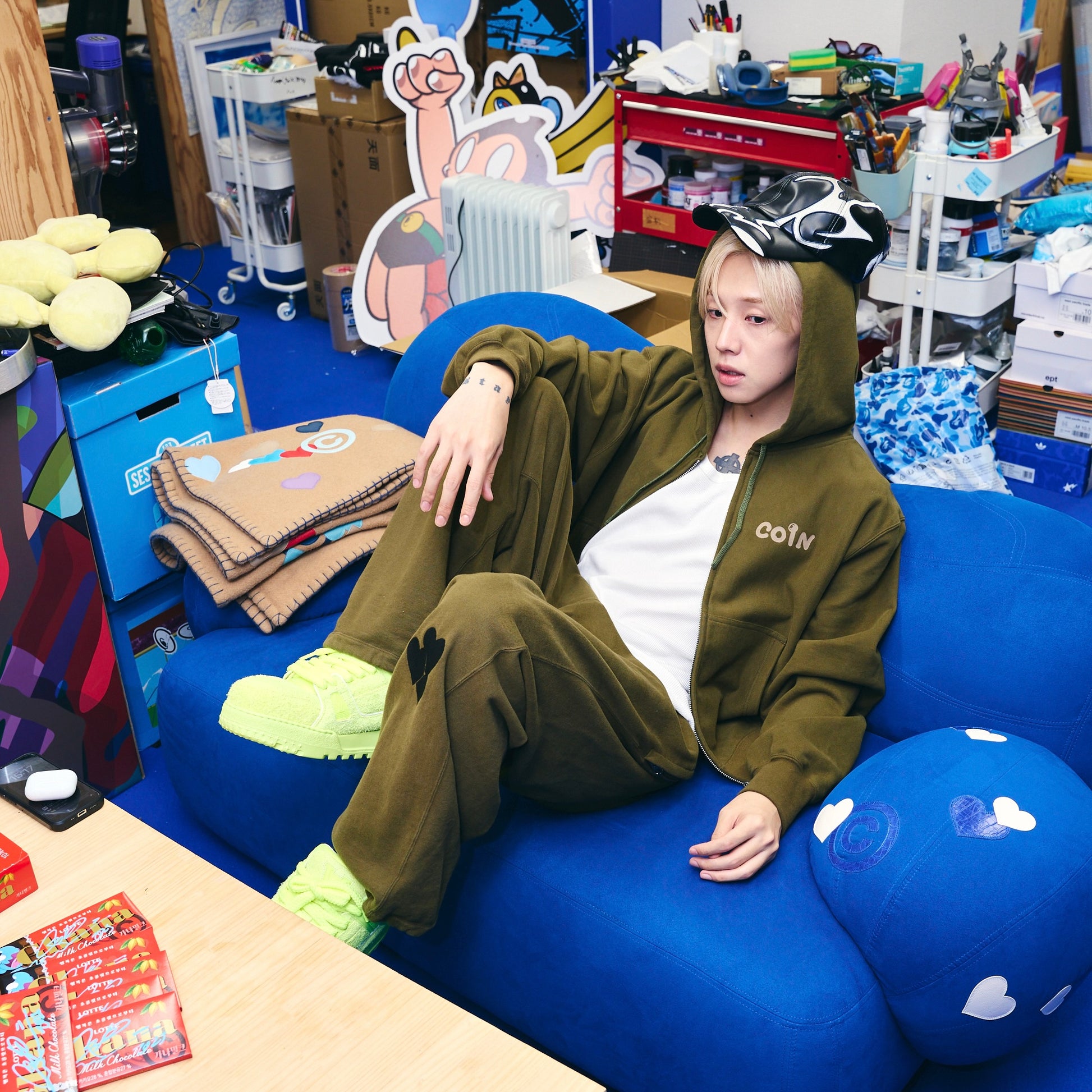 フードを被ると横から顔が見えない独自のデザインが特徴で、細部までこだわりが詰まった一着です。